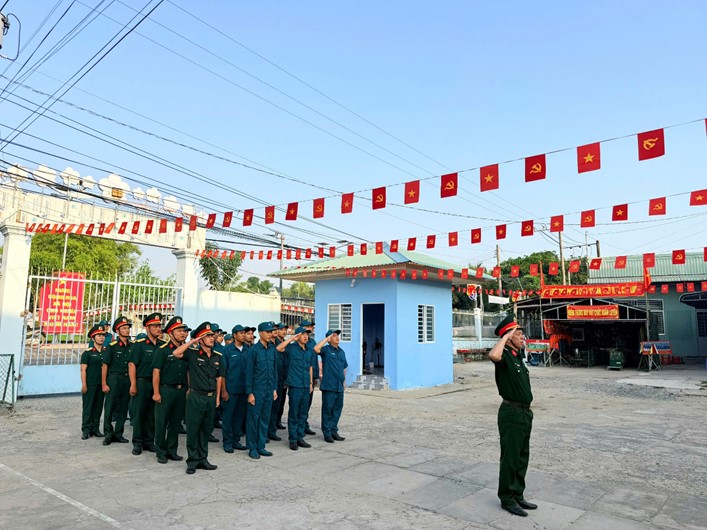 Trong không khí trang nghiêm, tất cả cán bộ, chiến sĩ cùng hướng về cờ Tổ quốc thiêng liêng và hát bài "Quốc ca" hào hùng của dân tộc Việt Nam. Khẳng định niềm tin son sắc đối với Đảng, với Tổ quốc và trách nhiệm với nhân dân của đội ngũ cán bộ, chiến sĩ Ban chỉ huy Quân sự xã Cần Đăng.