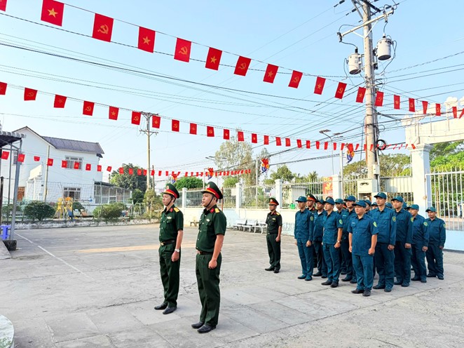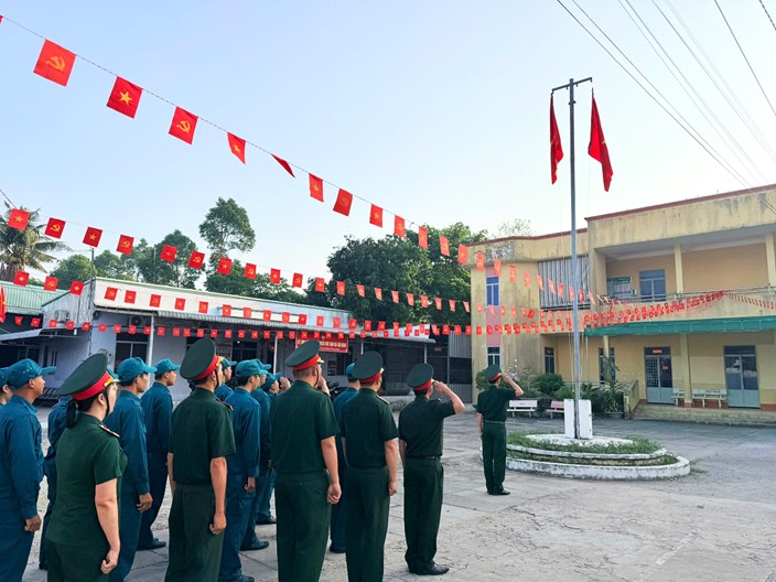 Ban chỉ huy Quân sự xã Cần Đăng tổ chức chào cờ đầu tuần