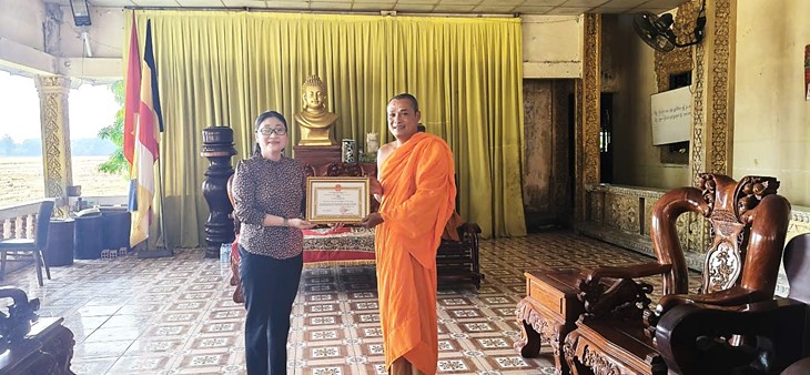 Dịp này, đoàn đã trao giấy khen của UBND xã Cần Đăng cho 2 tập thể: Chùa Preesstưng, Chùa Phước Hòa và 07 gia đình đã có nhiều đóng góp tích cực trong công tác bầu cử đại biểu Quốc hội khóa XVI và đại biểu HĐND các cấp./.