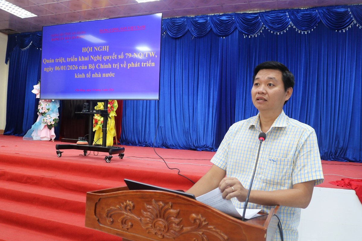 Tại Hội nghị, các đại biểu đã nghe Báo cáo viên của xã báo cáo 2 chuyên đề gồm: Chuyên đề 1: Nội dung trọng tâm, cốt lõi của Nghị quyết số 79-NQ/TW ngày 06/01/2026 của Bộ Chính trị về phát triển kinh tế Nhà nước; Chuyên đề 2: Nội dung trọng tâm, cốt lõi của Nghị quyết số 80-NQ/TW ngày 07/01/2026 của Bộ Chính trị về phát triển văn hóa Việt Nam.Nghị quyết số 79-NQ/TƯ, ngày 6-1-2026 của Bộ Chính trị về phát triển kinh tế nhà nước khẳng định kinh tế nhà nước là thành phần đặc biệt quan trọng của nền kinh tế thị trường định hướng xã hội chủ nghĩa.