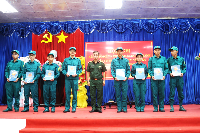 Tại hội nghị, Thiếu tá Đỗ Ngọc Chương, Chính trị viên phó Ban chỉ huy Quân sự xã thông qua đề cương tuyên truyền kỷ niệm 91 năm ngày truyền thống dân quân tự vệ (28/3/1935 - 28/3/2026); Báo cáo tóm tắt công tác xây dựng, huấn luyện và hoạt động của lực lượng dân quân tự trong năm qua. Ban chỉ huy quân sự xã Công bố các Quyết định của UBND xã về: Quyết định công nhận 35 công dân hoàn thành nghĩa vụ tham gia dân quân tự vệ năm 2026, Quyết định kết nạp 62 dân quân tự vệ mới. Những công dân được kết nạp lần này là các thanh niên tiêu biểu, có phẩm chất chính trị tốt, ý thức tổ chức kỷ luật cao, sẵn sàng tham gia xây dựng và bảo vệ địa phương.
