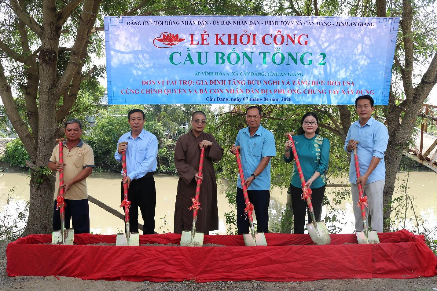 Cầu Bốn Tổng 2 được xây dựng mới nối liền ấp Vĩnh Hòa A, xã Cần Đăng và ấp Hòa Thành, xã An Châu, cầu có chiều dài 40m, chiều rộng 3,5m, tải trọng 3 tấn. Tổng kinh phí mua vật liệu xây mới 350 triệu đồng, trong đó mạnh thường quân Thành phố Hồ Chí Minh hỗ trợ 250 triệu đồng, phần còn lại do địa phương vận động xã hội hóa. Dự kiến, công trình sẽ hoàn thành và đưa vào sử dụng trước ngày 30/4/2026.