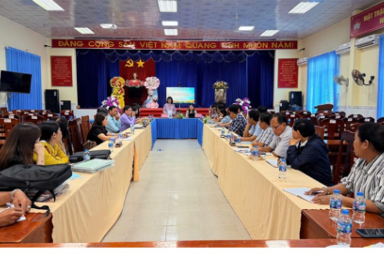 Tại buổi làm việc, đoàn kiểm tra thực tế tại 02 hộ gia đình; kiểm tra hồ sơ sổ sách phổ cập giáo dục - xóa mù chữ trên địa bàn xã. Trong những năm qua, công tác phổ cập giáo dục, xoá mù chữ luôn được Đảng ủy, HĐND, UBND xã quan tâm chỉ đạo sâu sát. Ban Chỉ đạo xã được kiện toàn hằng năm, phân công nhiệm vụ cụ thể cho từng thành viên phụ trách từng địa bàn ấp, từng cơ sở giáo dục. Các trường học trên địa bàn (gồm 02 trường Mẫu giáo, 04 trường Tiểu học, 02 trường THCS và 01 trường THPT) đã chủ động phối hợp chặt chẽ trong việc cập nhật hồ sơ, minh chứng, rà soát dữ liệu học sinh, góp phần duy trì vững chắc kết quả phổ cập giáo dục ở các cấp học.
