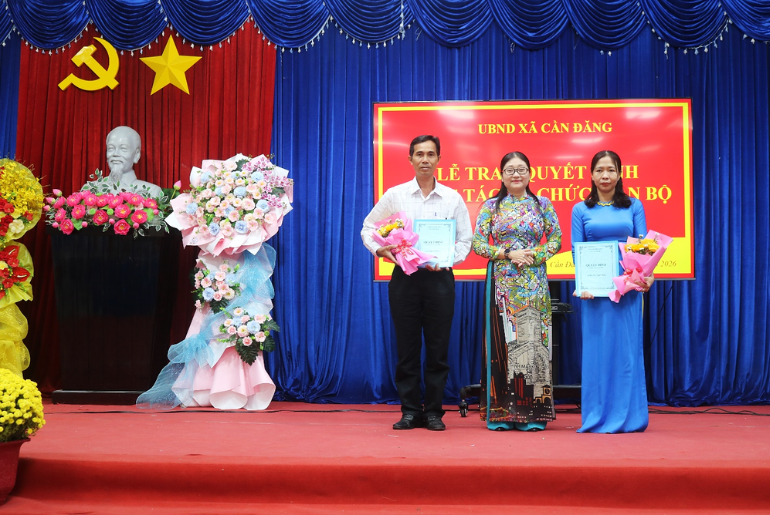 Tại buổi lễ, UBND xã Cần Đăng công bố và trao các Quyết định: Quyết định tổ chức lại Trung tâm Dịch vụ tổng hợp xã Cần Đăng; Quyết định bổ nhiệm Ông Lâm Thành Tại giữ chức vụ Giám đốc Trung tâm Dịch vụ tổng hợp xã Cần Đăng; Quyết định bổ nhiệm bà Nguyễn Thị Bích Thủy giữ chức vụ Phó Giám đốc Trung tâm Dịch vụ tổng hợp xã Cần Đăng; Quyết định bổ nhiệm bà Hà Thị Ngọc Diệu giữ chức vụ Giám đốc Trạm Y tế xã Cần Đăng; Quyết định bổ nhiệm Ông Trần Nhựt Em giữ chức vụ Phó Giám đốc Trạm Y tế xã Cần Đăng; Quyết định bổ nhiệm ông Lư Văn Tài, Chuyên viên Văn phòng Hội đồng nhân dân và Uỷ ban nhân xã giữ chức vụ Phó Chánh Văn phòng Hội đồng nhân dân và Uỷ ban nhân xã Cần Đăng tỉnh An Giang (thời hạn 5 năm); Quyết Định điều động Bà Nguyễn Thị Lê Chân, Công chức Trung tâm Phục vụ Hành chính công xã Cần Đăng đến công tác tại Văn phòng Hội đồng nhân dân và Ủy ban nhân dân xã Cần Đăng; Quyết Định điều động Bà Đặng Thị Tuyết Phượng, Công chức Văn phòng Hội đồng nhân dân và Ủy ban nhân dân xã (Chuyên viên giúp việc cho Ban Văn hóa- Xã hội xã Cần Đăng đến nhận công tác tại Phòng Văn hóa- Xã hội xã Cần Đăng.