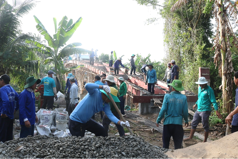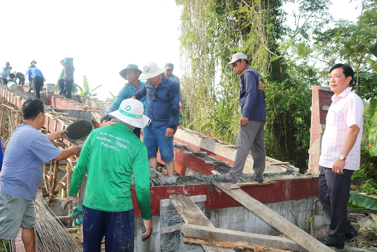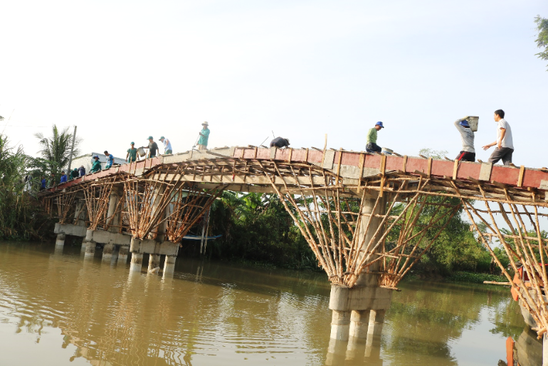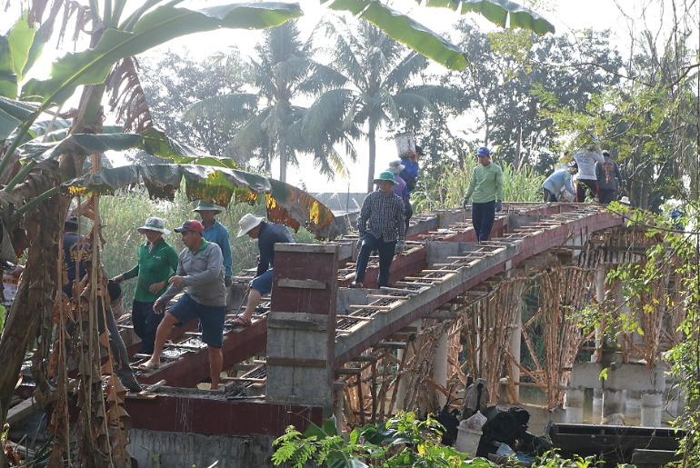Cần Đăng triển khai đổ bê tông mặt cầu Kênh Đứng