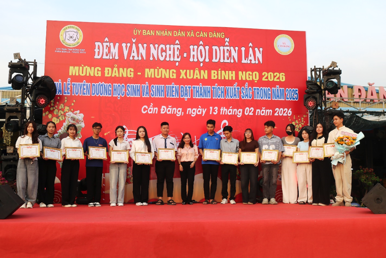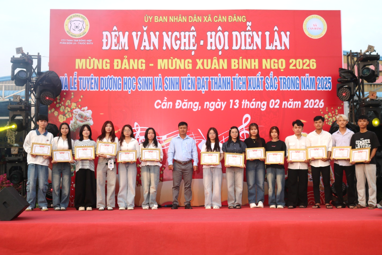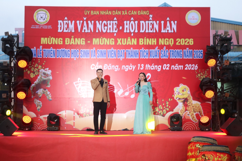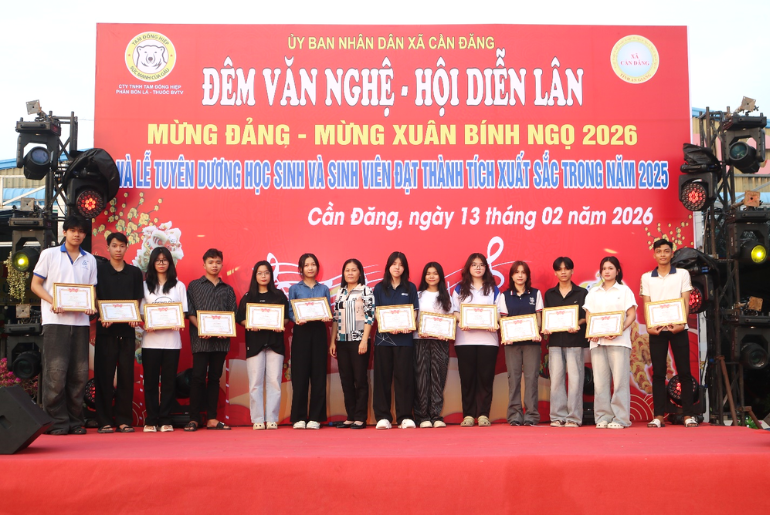 Tối ngày 13/02/2026, Trung tâm Dịch vụ tổng hợp xã Cần Đăng phối hợp Ủy ban nhân dân xã Cần Đăng tổ chức Chương trình đêm Văn nghệ - Hội diễn Lân "Mừng Đảng - Mừng Xuân Bính Ngọ 2026 và Tuyên dương học sinh và sinh viên đạt xuất sắc năm 2025. Tham dự chương trình có Đồng chí Trần Tấn Phương, Bí thư Đảng ủy, Chủ tịch Hội đồng nhân dân xã; đồng chí Nguyễn Duy Tân– Phó Bí thư Thường trực Đảng ủy xã; đồng chí Dương Nguyễn Chân Phương, Phó Bí thư Đảng ủy, Chủ tịch Uỷ ban nhân dân xã.