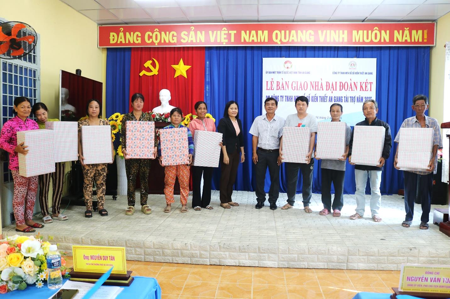 Sau thời gian thi công, 10 căn nhà Đại đoàn kết đã được bàn giao cho các hộ nghèo, hộ cận nghèo, hộ khó khăn trên địa bàn xã. Tổng kinh phí xây cất 724 triệu đồng, trong đó, Công ty Xổ số Kiến thiết An Giang hỗ trợ mỗi căn 60 triệu đồng, phần còn lại do các gia đình đóng góp cùng xây cất. Bình quân mỗi căn nhà có diện tích tối thiểu là 32m2 (4m x 8m), kết cấu theo kiểu “3 cứng”: nền cứng, khung cứng, mái cứng; có nhà vệ sinh và đồng hồ điện, đảm bảo sử dụng được lâu dài.
