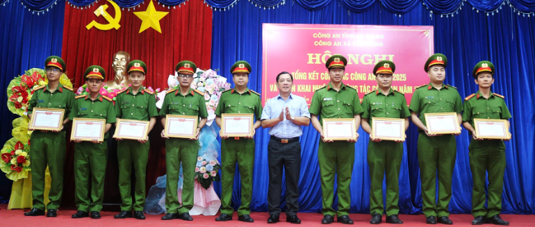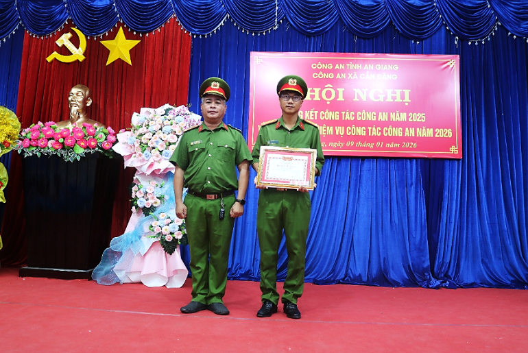 Dịp này, Công an tỉnh An Giang trao tặng danh hiệu “Đơn vị quyết thắng” Công an xã Cần Đăng đã có thành tích xuất sắc trong phong trào thi đua “ Vì an ninh tổ quốc” năm 2025; trao giấy khen cho 9 đồng chí đạt danh hiệu Chiến sĩ thi đua cơ sở đã có thành tích xuất sắc trong phong trào thi đua “ Vì an ninh tổ quốc” năm 2025. UBND xã Cần Đăng trao giấy khen cho 07 đồng chí với thành tích xuất sắc trong đợt cao điểm tấn công trấn áp tội phạm, bảo đảm an ninh trật tự các hoạt động kỷ niệm 80 năm Cách mạng tháng Tám, Quốc khánh 2/9 và Đại hội đảng bộ các cấp./.