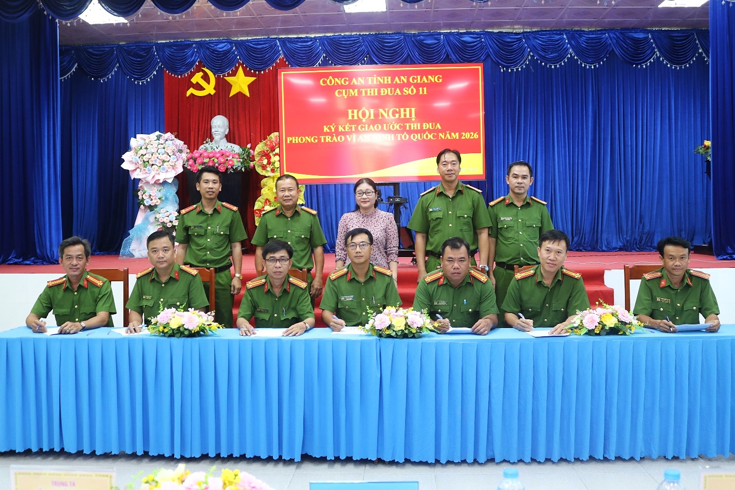 Tại buổi Lễ, lãnh đạo các đơn vị Cụm thi đua số 11 gồm các xã: Cần Đăng, An Châu, Bình Hòa, Bình Mỹ, Vĩnh An, Vĩnh Hanh và xã Mỹ Hòa Hưng đã thống nhất, ký kết giao ước thi đua phong trào Vì an ninh tổ quốc năm 2026 với các Chỉ tiêu đột phá về đổi mới tư duy, phương thức lãnh đạo; đột phá trong bảo vệ an ninh quốc gia; đột phá trong đấu tranh phòng chống tội phạm; đột phá về quản lý nhà nước, chuyển đổi số; đột phá trong xây dựng thế trận an ninh nhân dân vững chắc; đột phá trong công tác xây dựng lực lượng CAND; đột phá trong công tác tài chính, hậu cần, kỹ thuật; công tác Công an năm 2026.