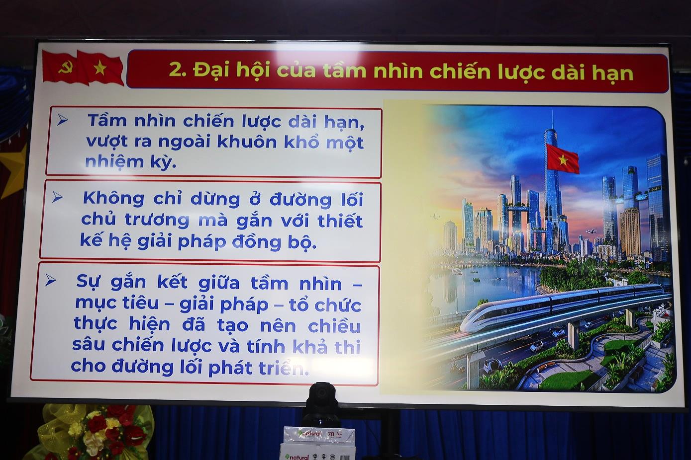 Các đại biểu tham dự hội nghị được nghe đồng chí Huỳnh Thanh Tâm, Ủy viên Ban thường vụ đảng ủy xã- Trưởng Ban xây dựng Đảng ủy xã triển khai những nội dung cốt lõi, những vấn đề mới trong các văn kiện Đại hội XIV của đảng: Nghị quyết Đại hội đại biểu toàn quốc lần thứ XIV của Đảng; Báo cáo chính trị của Ban Chấp hành Trung ương Đảng khóa XIII tại Đại hội đại biểu toàn quốc lần thứ XIV của Đảng; Báo cáo tổng kết một số vấn đề lý luận và thực tiễn về công cuộc đổi mới theo định hướng xã hội chủ nghĩa trong 40 năm qua ở Việt Nam; Báo cáo tổng kết 15 năm thi hành Điều lệ Đảng (2011 – 2025) và đề xuất định hướng bổ sung, sửa đổi Điều lệ Đảng.
