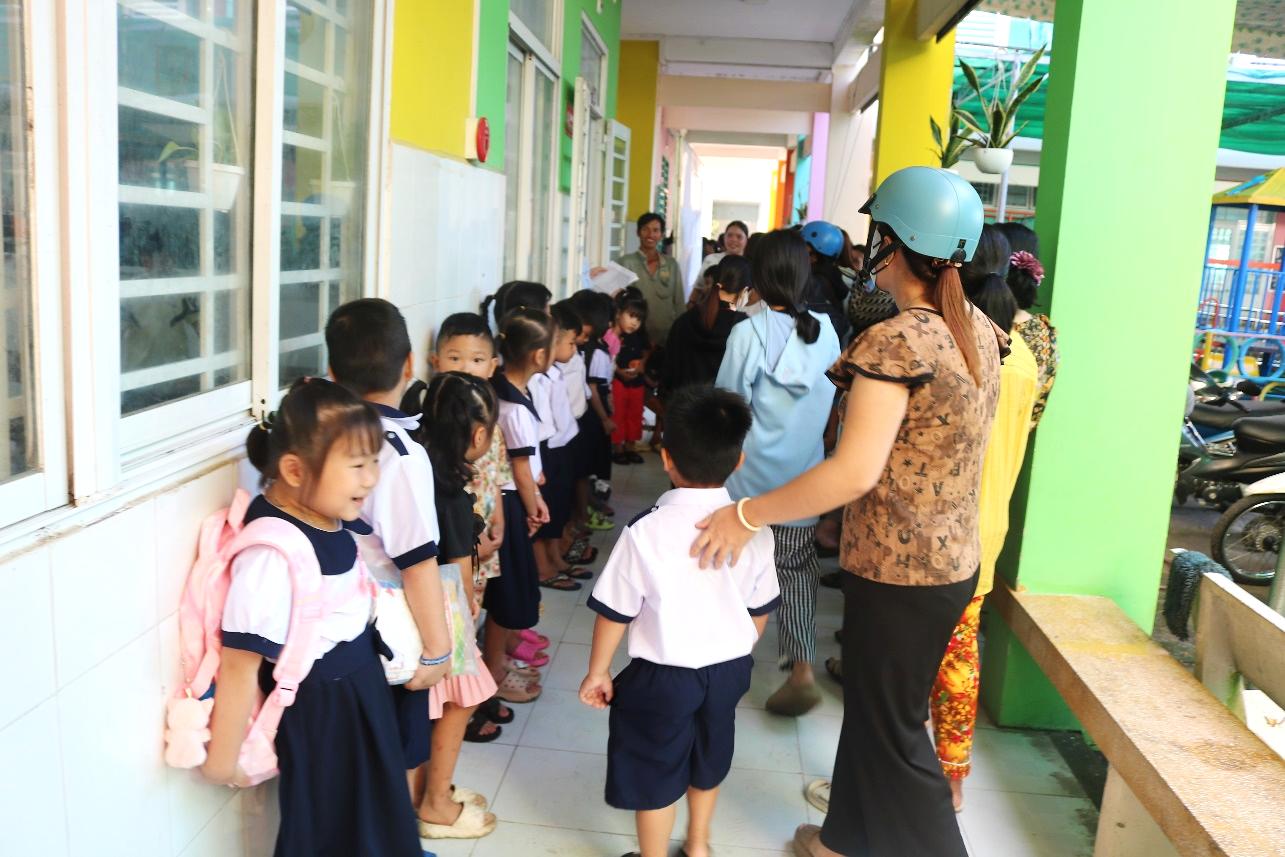 Ngay từ sáng sớm, rất nhiều học sinh được phụ huynh đưa đến các điểm trường