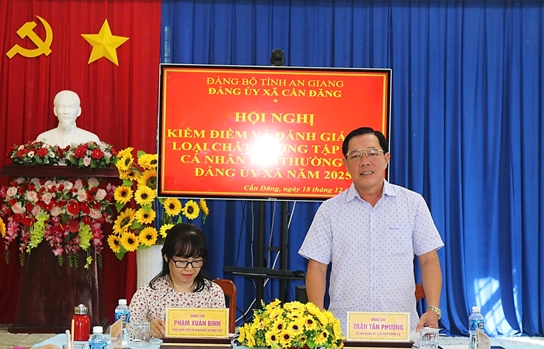 Sáng ngày 18/12/2025, Đảng ủy xã Cần Đăng tổ chức hội nghị kiểm điểm và đánh giá, xếp loại tập thể, cá nhân Ban thường vụ Đảng ủy xã năm 2025. Tham dự hội nghị có đồng chí Phạm Xuân Bình, Phó Giám đốc Sở Giáo dục và Đào tạo tỉnh An Giang; đồng chí Trần Tấn Phương, Bí thư Đảng ủy, Chủ tịch HĐND xã chủ trì hội nghị; tham dự hội nghị có đồng chí Nguyễn Duy Tân, Phó Bí thư Thường trực Đảng ủy xã; đồng chí Dương Nguyễn Chân Phương, Phó Bí thư Đảng ủy- Chủ tịch UBND xã cùng các đồng chí ủy viên Ban thường vụ Đảng ủy.