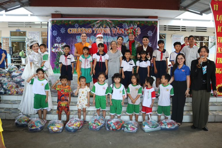 Tại chương trình, cùng với những tiết mục văn nghệ chào mừng Giáng sinh, mừng năm mới, 100 suất quà đã được trao đến tay các em học sinh có hoàn cảnh khó khăn trên địa bàn xã. Tổng kinh phí trao tặng trị giá 20 triệu đồng từ nguồn Cô Năm Thảo, Phường Châu Đốc tài trợ.