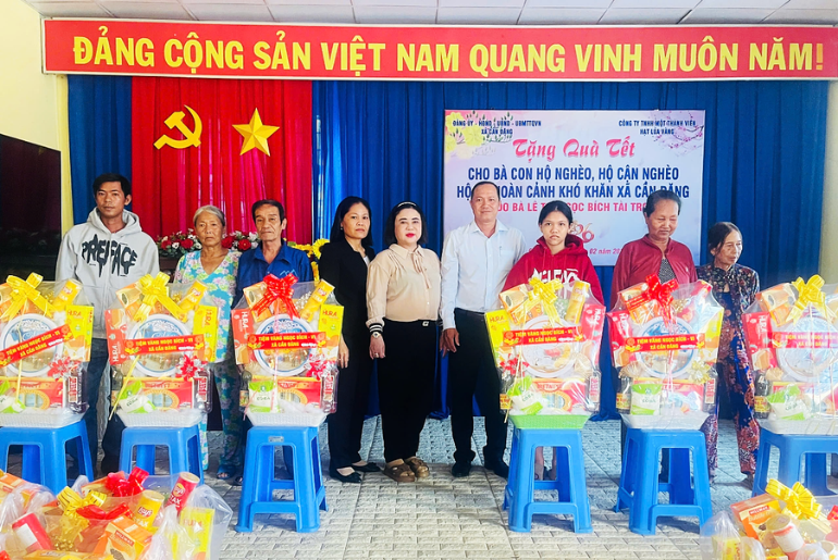 Theo đó, 150 suất quà tết được trao đến cho bà con hộ nghèo, hộ cận nghèo và hộ có hoàn cảnh khó khăn trên địa bàn xã. Mỗi suất quà có trị giá 300.000 đồng, tổng kinh phí trao tặng là 45.000.000 đồng từ nguồn bà Lê Thị Ngọc Bích, Công ty TNHH một thành viên Hạt Lúa vàng tài trợ.