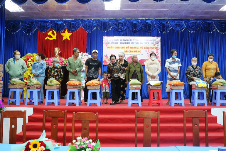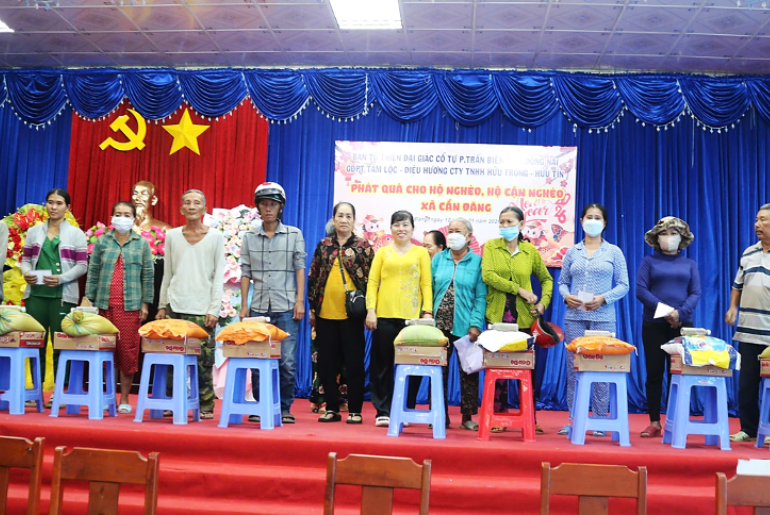 Theo đó, 200 suất quà tết đã được trao cho các hộ nghèo, hộ cận nghèo trên địa bàn xã, với mỗi suất trị giá 500.000 đồng, bao gồm gạo, mì và tiền mặt. Tổng kinh phí trao tặng 100.000.000 đồng từ nguồn hỗ trợ của Gia đình phật tử Tâm Lộc- Diệu Hương Công ty TNHH Hữu Trọng- Hữu tín và Ban Từ thiện Đại Giác Cổ Tự, Phường Trấn Biên, tỉnh Đồng Nai.