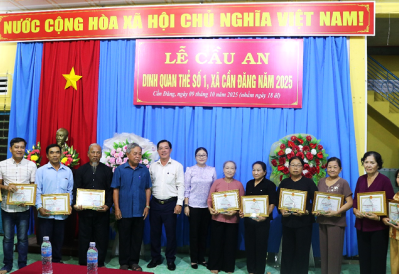 Cần Đăng khen thưởng 15 cá nhân có thành tích đóng góp tích cực trong công tác tổ chức lễ hội cầu an Dinh Quan Thẻ năm 2025