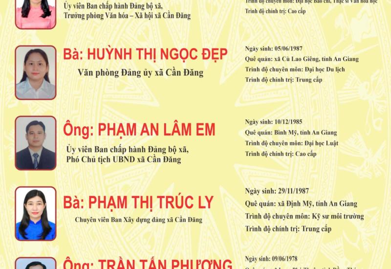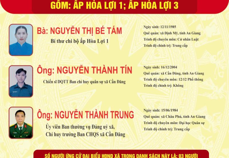 DANH SÁCH NGƯỜI ỨNG CỬ ĐẠI BIỂU hỘI ĐỒNG NHÂN DÂN XÃ CẦN ĐĂNG KHÓA XIII, NHIỆM KỲ 2026-2031 09/03/2026 DANH SÁCH NGƯỜI ỨNG CỬ ĐẠI BIỂU hỘI ĐỒNG NHÂN DÂN XÃ CẦN ĐĂNG KHÓA XIII, NHIỆM KỲ 2026-2031 ĐƠN VỊ BẦU CỬ SỐ 1 GỒM ẤP CẦN THẠNH Read more